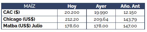 En el mercado de maíz se observó un menor número de compradores activos y una tendencia a la baja en los valores ofrecidos en sintonía con el mercado de Chicago. En materia de ofertas abierta, también hubo un menor abanico de posibilidades de entrega.