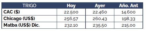 En el mercado del trigo, tuvimos un mayor número de interesados en hacerse del cereal de la nueva campaña. En cuanto a los precios, tuvimos ofertas estables en los precios por la mercadería disponible, y una caída en algunas posiciones puntuales de la campaña 2021/22.