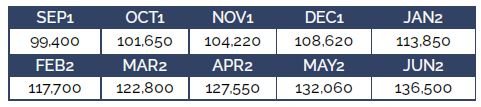 | Jul-24 | 187,00 | -0,89 | 432,39 | -2,57 | 1177,47 | -18,52 | 361,33 | 0,99 | ||||