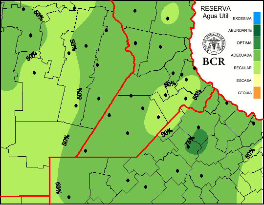 Un 55% de los lotes de soja de primera se los considera en muy buenas condiciones. Casi una semana sin lluvias, con sol y viento, colaboraron en bajar la presencia de agua en lotes encharcados, bajar el nivel de las napas y recuperar el estado de la soja. Pero aún queda un 10% en condiciones regulares a malas, afectadas por los excesos. La mayor parte de los lotes están iniciando el llenado de granos. Las enfermedades de fin de ciclo y la presencia de chinches comienzan a ser focos de preocupación. Muchos ya han comenzado los tratamientos para su control.
