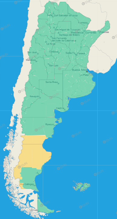 Chubut: Cordillera de Río Senguer – Meseta de Río Senguer – Meseta de Escalante – Sarmiento – Sudoeste de Florentino Ameghino – Costa de Escalante