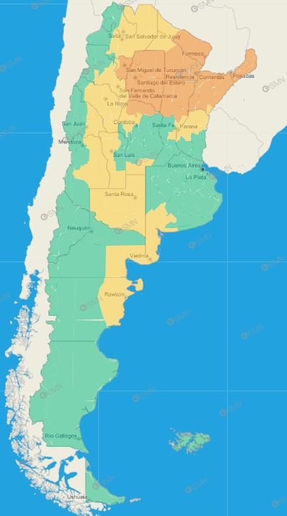 Buenos Aires: Costa de Patagones – Norte de Bahía Blanca – Oeste de Patagones – Oeste de Villarino – Puan – Zona baja de Coronel Pringles – Zona baja de Coronel Suárez – Zona baja de Saavedra – Zona baja de Tornquist – Costa de Bahía Blanca – Costa de Coronel Dorrego – Costa de Coronel de Marina Leonardo Rosales – Costa de Villarino – Monte Hermoso