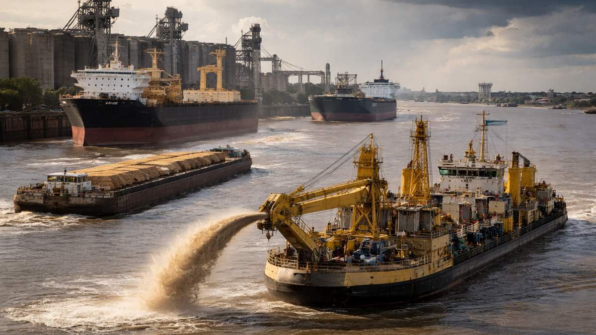 El tramo en juego va desde la confluencia del Paraná hasta el Río de la Plata exterior, eje central del sistema exportador.