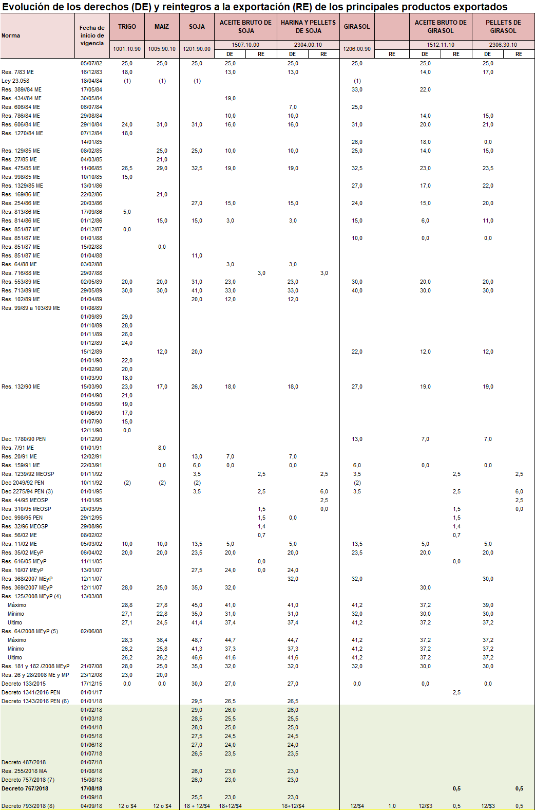 Economía y políticaMercadosHistoria abreviada de derechos de exportación aplicados a la agro-industria en Argentina 30 de enero de 2019FacebookTwitterWhatsAppTelegramEmailImpresión Historia abreviada de derechos de exportación aplicados a la agro-industria en Argentina Fuente: BCRMás información agropecuaria click aquí