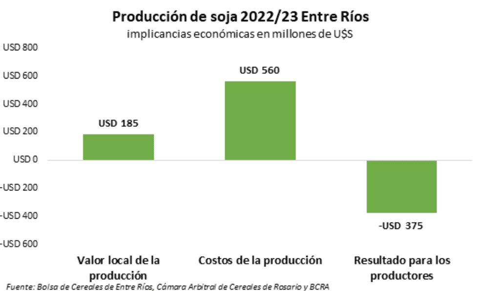 Las pérdidas de los productores de soja en la provincia superaron los U$S 370 millones en la última campaña, así lo deja ver el informe sobre el impacto económico de la producción de soja en la provincia realizado por la Bolsa de Cereales de Entre Ríos, junto a la Facultad de Ciencias Económicas de la UNER.