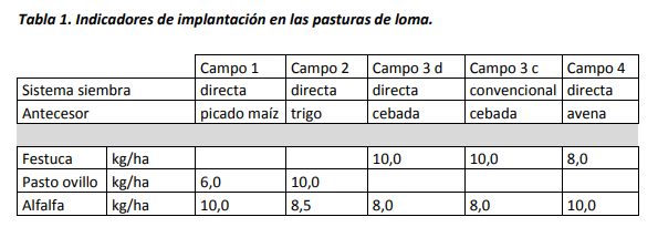 A continuación, se muestran los datos obtenidos para pasturas de loma en la tabla 1