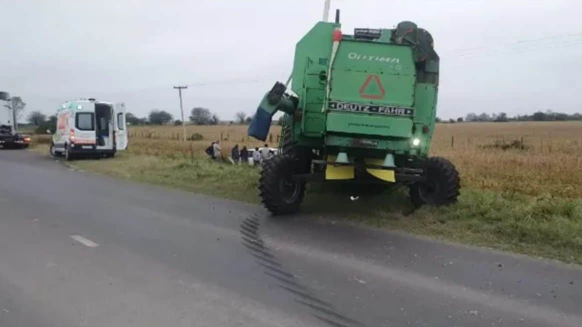 Un accidente de tránsito ocurrió alrededor de las 17:40 de este sábado en la localidad de Viale, provincia de Entre Ríos. La colisión involucró a un auto y una cosechadora, resultando en la internación de un adulto mayor.