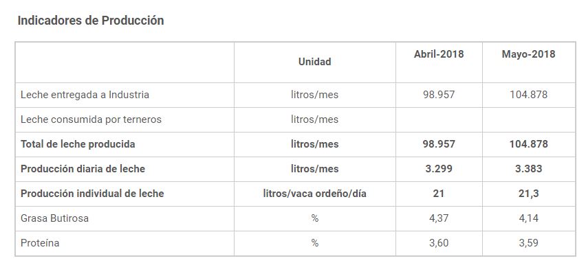 GanaderíaIndicadores Mayo 2018 de Unidad de Producción de Leche Intensiva (UPLI) 26 de junio de 2018FacebookTwitterWhatsAppTelegramEmailImpresión Tambo experimental intensificado con vacas cruzas: indicadores mensuales de producción, calidad higiénico-sanitaria, composición del rodeo y litros libres de alimentación. Fecha Informe: 25/06/2018 Fuente: INTA por María Alejandra Pece