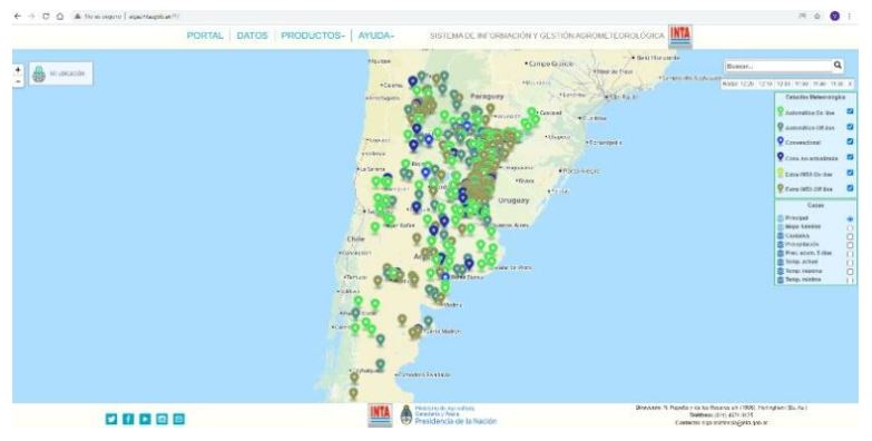 En cuanto a SIGA (Sistema de Información y Gestión Agrometeorológico del INTA), el organismo provee y ofrece al servicio de la comunidad (investigadores, productores, escuelas agrotécnicas, usuarios finales, etc.) una base de datos centralizada cuyo objetivo consiste en brindar información agrometeorológica actual e histórica de ámbito nacional.
