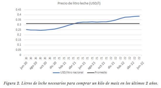 Fuente: SIGLEA. Dirección Nacional de Lechería. Dólar: Banco Nación, promedio julio 2022.