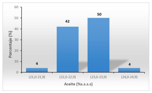 Gráfico 2. Distribución porcentual del contenido de aceite de soja de 1º siembra.