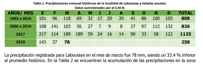 ELABORADO POR: AER Laboulaye-Delegación Laboulaye del Ministerio de Agroindustria Información correspondiente al mes de Marzo 2018