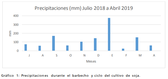 En la campaña 2018/19, la Agencia INTA 9 de Julio continuando con una línea de trabajo que data de muchos años, realizó una experiencia a efectos de corroborar lo aquí expresado, trabajando con varios productos biológicos. El ensayo se realizó en el establecimiento de los Hnos Masac cesi, sobre un lote que tenía como antecesor a soja de primera. La siembra se realizó el 8 de noviembre en forma directa. Se empleó un diseño en bloques al azar con 4 repeticiones. Cada unidad experimental contó de 7 surcos por 7 metros de largo. En la línea de siembra se adicionó un fertilizante mezcla conformado con 64 % de superfosfato triple y 36 % se superfosfato simple de calcio, de esta mezcla se emplearon 90 kg/ha. Los tratamientos ensayados se detallan a continuación: