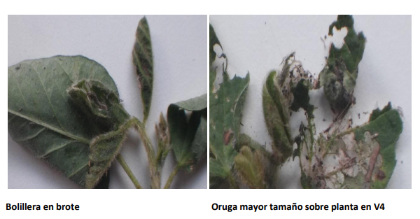 Los niveles de captura de adultos a principios de Noviembre registraron valores que no se corresponden con los hallados los últimos años para esta época pero que no deberían expresar niveles de abundancia a campo de relevancia. Los muestreos con correcta identificación de especies no superan los 0,3 orugas/metro lineal cuya mayor densidad se corresponde con lotes de soja sembrados entre el 15-20 Octubre encontrándose entre V4-V5. En lotes de Siembra a partir de noviembre no hubo coincidencia de este vuelo con la emergencia por lo tanto las densidades a campo son menores. Las capturas de adultos a fin de Noviembre registran valores bajos.