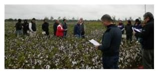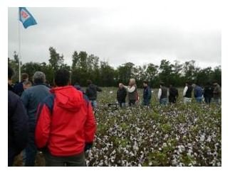 Se desarrolló por segundo año consecutivo la jornada a campo sobre “Productividad Sustentable del Cultivo de Algodón, alternativas de manejo para el Área de Riego” en el Campo Experimental “Francisco Cantos” del INTA Santiago del Estero, con la participación de numerosos profesionales del medio, asesores técnicos, estudiantes de agronomía y productores del área de riego de Santiago del Estero.