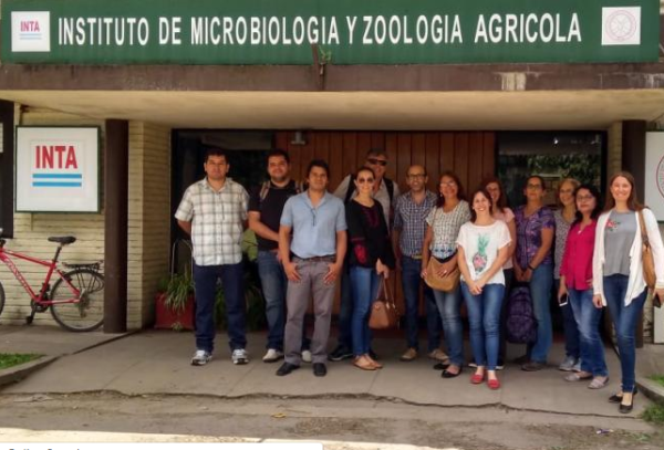 En el marco de la reunión anual del COSAVE, representantes de los países integrantes, visitaron la cuarentena del IMYZA, ubicada en el Insectario de Investigaciones para Lucha Biológica. Investigadoras del grupo de Ecología y control biológico de plagas del instituto, acompañaron en la visita a Alvaro Otondo (SENASAG – Bolivia); Luiz Alexandre Nogueira de Sa (EMBRAPA Meio Ambiente – Brasil); Sandra Ide Mayorga (SAG – Chile); Yesika Velarde (SENASA – Perú); Karina Punschke (Ministerio Ganadería y Pesca – Uruguay); Julio Rojas, Carmen Berni y Natalia Toledo (SENAVE – Paraguay) y a Marcelo Sánchez y Jorge Orellana (SENASA – Argentina).