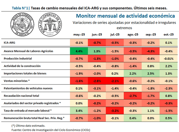 La actividad económica argentina vuelve a crecer: el ICA-ARG sube 0,1% en octubre y corta siete meses de estancamiento