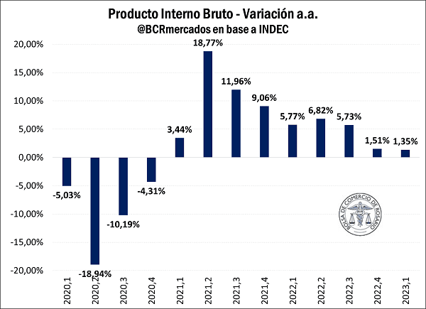La actividad económica se contrae en Argentina, en el marco de la sequía de los últimos tres años, el proceso electoral y la alta inflación. Si bien la recuperación post-pandemia fue acelerada y se pudo mantener durante el año 2022 con tasas de crecimiento considerables, aparecen signos negativos con una fuerte reducción de las tasas de crecimiento interanual en los últimos dos trimestres. Asimismo, se destaca una escalada inflacionaria que no se observaba desde finales de los ochenta y una pérdida de reservas que ejercen presión sobre el tipo de cambio oficial a través de la brecha cambiaria.
