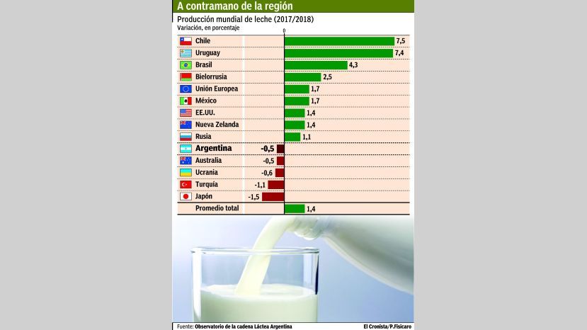 Chile, Uruguay y Brasil fueron los de mejor performance en la actividad lechera en todo el mundo. En Argentina, la producción se contrajo un 0,5% el año pasado.