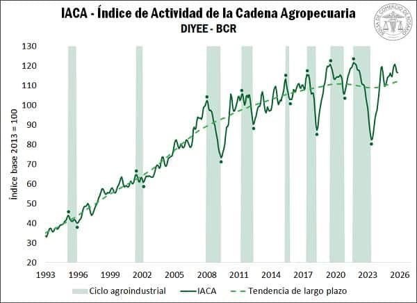 La Bolsa de Comercio de Rosario lanzó el Índice de Actividad de la Cadena Agropecuaria (IACA-BCR), el primer indicador mensual que permite monitorear en tiempo real la evolución del sector responsable del 20% del PBI y el 60% de las exportaciones del país. Octubre mostró un crecimiento interanual del 4%, confirmando la fortaleza de la agroindustria argentina.