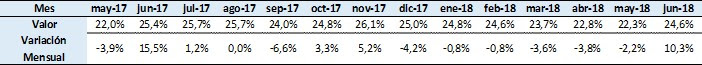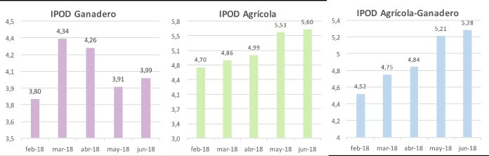 - En junio, el IPOD agrícola alcanzó un valor de 5,6 veces, 1,3% superior a mayo. Fue el quinto mes consecutivo de aumento.