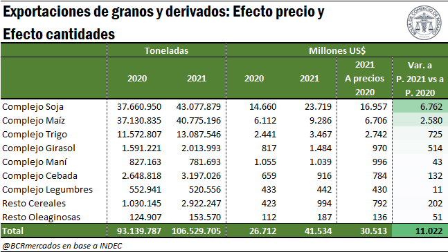 Ante este fenómeno, el punto que conviene analizar es qué proporción del incremento en las exportaciones de granos y derivados se debe al efecto precio y qué proporción se explica por el aumento en el volumen exportado.