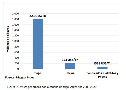 El trigo es el cereal más utilizado para consumo humano en el mundo. Argentina es autosuficiente en la producción de trigo, exporta más del 60% de su producción como grano y la industria molinera posee capacidad ociosa, know how y capital físico para agregar valor a la materia prima disponible en cantidad y calidad suficiente. El país tiene el enorme desafío de procurar una mayor industrialización del cereal de modo de sustituir la exportación de grano por la de productos con mayor valor agregado pues a medida que se avanza hacia eslabones industriales más sofisticados, el valor generado por la cadena triguera se multiplica.