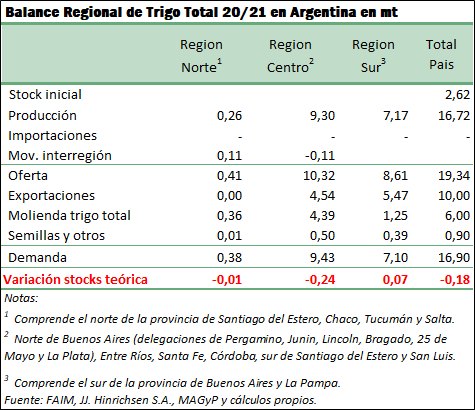 Por otra parte, estimando que se mantendrá relativamente constante el consumo de harina de pan y que, consecuentemente, la actividad de molienda en las regiones debiera de mantener la mayor parte de su ritmo, podría producirse una necesidad de comprar trigo por parte de la región del norte, debido a que su propia producción no alcanzaría para cubrir estas necesidades. Por ello mismo, es que se estiman “movimientos interregionales” de cereal. Esta demanda se ha restado de la región centro debido a la cercanía de regiones puesto que el costo logístico que implicará la compra de trigo para los molinos será menor de hacerlo así.