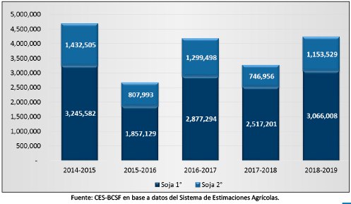 excesos hídricos en el norte del país. Según datos de la Bolsa de Cereales de Buenos Aires, la superficie total