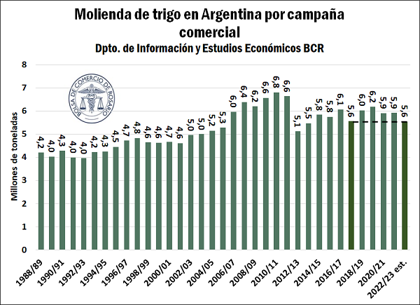 Este escenario obviamente le restará competitividad al sector exportador, que encontrará dificultades para colocar embarques por fuera del tradicional mercado regional. La situación contrasta significativamente con lo experimentado durante el año 2021, cuando se exportaron más de quince millones de toneladas de trigo hacia diversos destinos de Sudamérica, Asia y África.