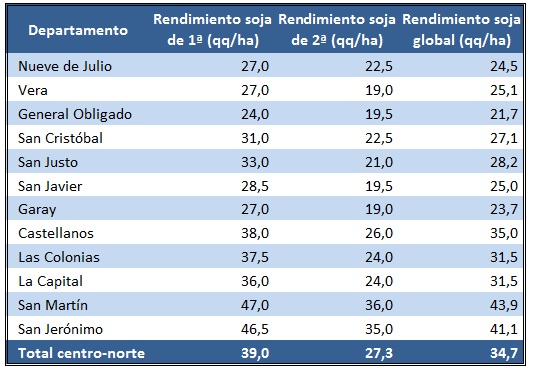 Sin embargo, la campaña estuvo marcada por la variabilidad de realidades en los diferentes departamentos, destacándose los departamentos del sur del área de referencia, con rendimientos muy por encima del promedio global. Por otro lado, los departamentos del centro y del norte del área evidenciaron rendimientos muy por debajo del promedio global de la región, con algunos casos con más de 20 quintales de diferencia respecto a los departamentos del sur.