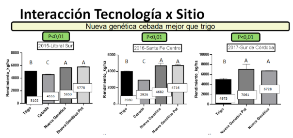 El año pasado se realizaron, a partir de datos validados en ensayos, simulaciones con diferentes variables productivas en función de la base de datos meteorológicos de los últimos 33 años. Se empleó el sistema Ceres Barley (DSSAT 4.7).