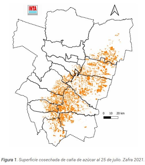 El Laboratorio de Sistemas de Información Territorial del INTA Famaillá determinó, a partir del procesamiento de imágenes satelitales, un avance cercano al 54% en la cosecha del cultivo en la provincia. El dato equivale a 147.524 ha cosechadas hasta el 30 de julio de 2021.