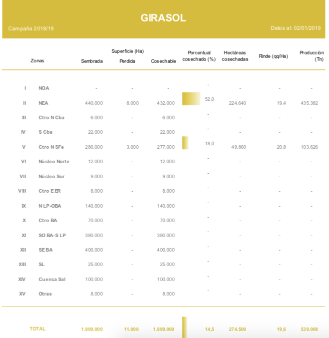 MANTENIENDO UN ADELANTO INTERANUAL DE 3,1 PUNTOS PORCENTUALES, LA COSECHA DE GIRASOL PROGRESÓ CON FLUIDEZ SOBRE EL NORTE ARGENTINO.