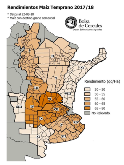 Sobre la provincia de Córdoba la recolección del cereal continúa brindando rindes por debajo de los promedios históricos zonales. Gran parte de los lotes que quedan por cosechar se ubican en los departamentos del centro y sur de la provincia. Hacia la zona del NOA luego de cosecharse el 94 % del área apta, el volumen acumulado ya supera las 2 MTn con un rinde medio de 60,3 qq/Ha. En la región del NEA el avance de recolección llegó al 96 %, en números absolutos se han cosechado más de 550.000 Ha.