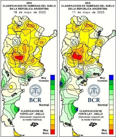 Reservas de agua en detrimento, y La Niña que continúa vigente La ausencia de precipitaciones generalizadas que se mantiene desde el inicio de mayo potencia el desecamiento superficial y condiciona el avance de la siembra fina. Ingresamos en la época del año en la cual las precipitaciones son más escasas. Mayo es el último mes con posibilidades de proveer algún buen aporte pluvial previo al invierno, en especial sobre el oeste de la región, zona con menor humedad edáfica. Pero los pronósticos de corto plazo no prevén precipitaciones significativas o generalizadas en lo que resta del mes, por lo que será difícil cubrir los requerimientos de los perfiles para alcanzar niveles de humedad cercanos a los óptimos. Incluso, la evolución de las variables oceánicas y atmosféricas es consistente con las condiciones de continuidad de La Niña débil hasta el trimestre mayo-julio de 2022. Como si fuese poco, los modelos probabilísticos indican posibilidades que llegan a un 55% de contar con un evento Nina en la primavera 2022. Malas noticias para la campaña 2022/23: no solo nos espera por delante una Niña en el invierno, sino que, además, tenemos chances de contar con este evento en la primavera, disminuyendo la posibilidad de contar con agua a la salida del periodo invernal.