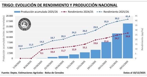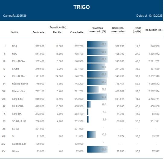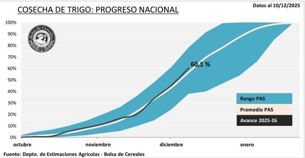 Con el avance de la cosecha y el comportamiento del clima en lo que resta de diciembre, el trigo ingresa en su tramo decisivo, marcando el pulso de una campaña que se encamina a cerrar con números sólidos.