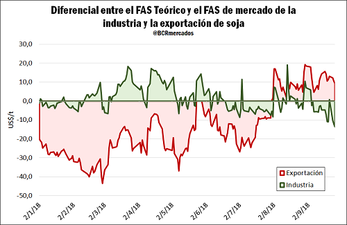 Con la tracción del gigante asiático la actividad de exportación de soja ha mejorado su atractivo, ampliándose el diferencial entre el FAS teórico y el FAS de mercado, a la inversa de lo acontecido para la actividad industrial. Ello cambia las perspectivas para el balance de oferta y demanda proyectado en el próximo ciclo, aumentando el peso relativo del despacho de granos en relación a su procesamiento.