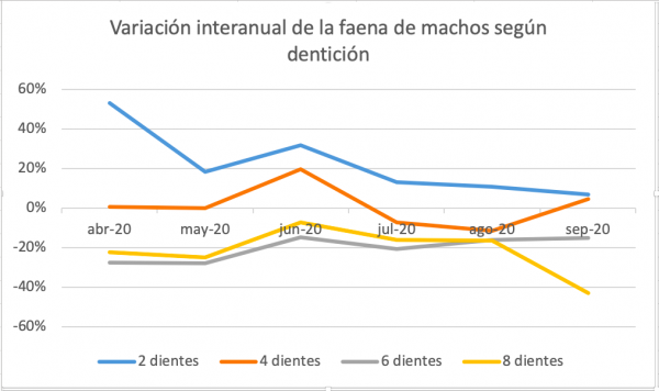 Desde abril de 2019, con el cambio de la tipificación, comenzó a haber registros de los animales procesados con su clasificación de acuerdo al número de dientes. Es decir, desde este último abril, se pueden hacer comparaciones interanuales.