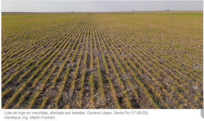 En paralelo, sobre el centro del área productiva, el cereal presenta bajo porte y demoras en el desarrollo. Bajo este contexto, las heladas registradas en Córdoba y Santa Fe han causado los mayores daños en lotes de ciclos cortos que poseen menor enraizamiento.