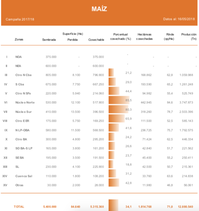Las zonas Oeste de Buenos Aires-Norte de La Pampa, Cuenca del Salado y el Centro de Buenos Aires mantienen una demora en la recolección producto de la falta de piso en los lotes. Hacia las zonas del NOA y NEA se continúan registrando precipitaciones que mejoran el perfil para la siembra de fina, pero que no tienen un efecto positivo sobre los cuadros de maíz. En la provincia de Córdoba, la cosecha avanza sobre lotes tardíos en el oeste provincial. Sobre las zonas Centro- Este de Entre Ríos y Centro-Norte de Santa Fe, se registran los rendimientos más bajos de la actual campaña producto del impacto del estrés hídrico.