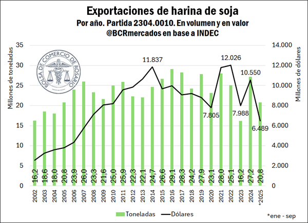 Hoy, la harina de soja argentina llega a más de un tercio del planeta, manteniéndose como un vector decisivo en las relaciones comerciales del país y como uno de los productos agroindustriales más buscados a nivel global.