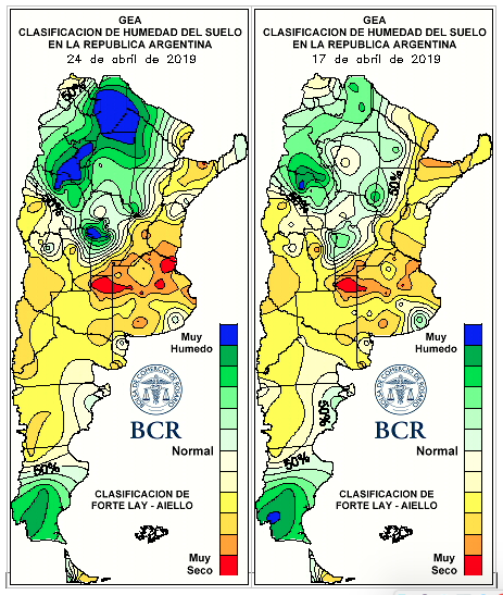 Llovió menos de la cuarta parte que en el 2017. Incluso teniendo en cuenta las lluvias de hoy, jueves 25 de abril, los totales del mes están entre 25 a 75 mm. En el 2017, las lluvias de la región trepaban de 150 hasta 350 mm para esta altura del mes.