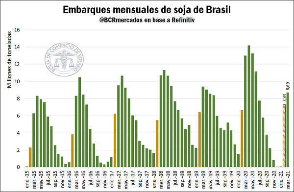Este retraso toma mayor relevancia cuando se considera que Brasil tenía comprometido para enviar al exterior en febrero un total de 7,3 Mt de poroto, el mayor volumen para este mes, pero de las cuales ha podido embarcar a la fecha sólo 4,3. Hay un remanente que deberá posponerse hasta marzo, sumándose a las 8,6 Mt ya comprometidas para exportar durante ese mes.