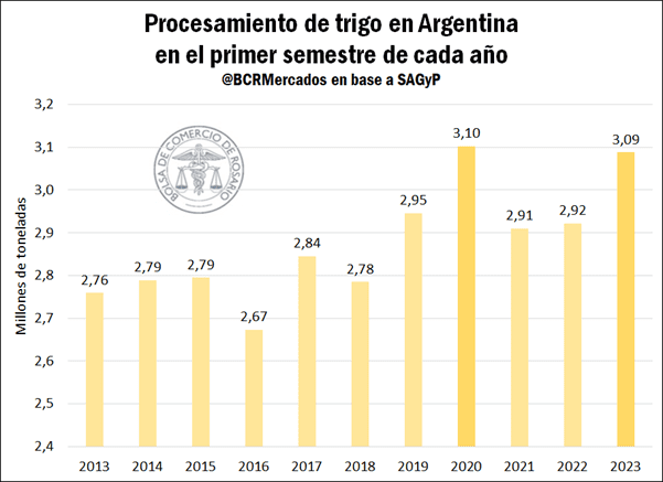 La molienda de trigo en el primer semestre alcanzó el mayor nivel de la última década