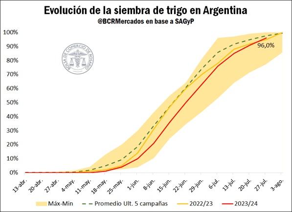 Respecto al trigo nuevo 2023/24 las siembras avanzaron con lentitud, pero prácticamente se dieron por finalizadas