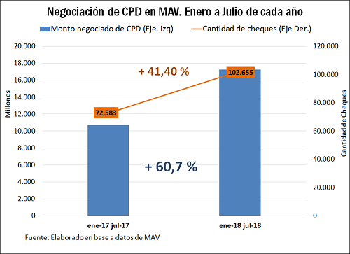 En el último período, luego en el aumento de las tasas de referencia a mediados de agosto, se ha notado una disparidad creciente entre las tasas de interés negociadas por el “descuento de cheques en la bolsa” avalados por SGR (Sociedades de Garantía Recíproca) negociados en El MAV y el descuento de cheques en los Bancos Comerciales.