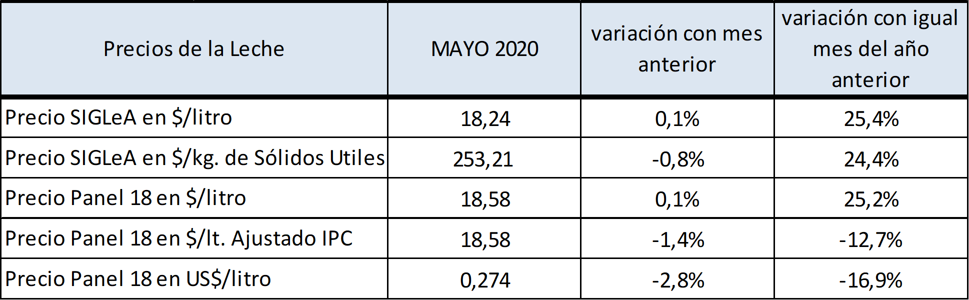 El Ocla, por otra parte, publicó hoy los precios promedios pagados al productor en mayo: 18,58 pesos por litro, que significan en 0,274 en dólares.