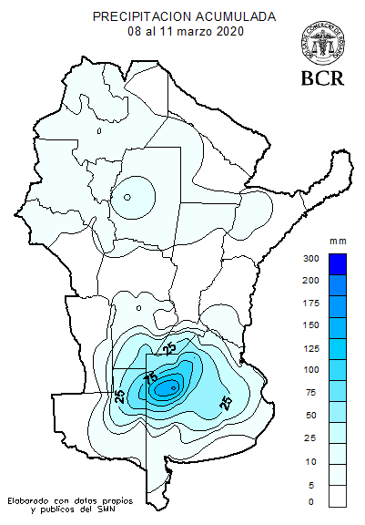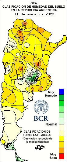 Hay buenas noticias para el noroeste de Buenos Aires y La Pampa: volvieron a recibir lluvias, aunque el evento ha sido desparejo y muy variable. Las tormentas han hecho foco en Pehuajó y Trenque Lauquen, dejando 146 y 140 mm acumulados, respectivamente. Pero más allá de esta área productiva de Pehuajó que recibió esta gran recarga de agua, los montos de lluvias caen por debajo de 25 mm. En el resto de la región pampeana, la falta de agua sigue vigente, van 23 días sin lluvias importantes. La imagen actualizada al miércoles 11 de marzo, es elocuente, y muestra el avance de la desecación pese a las últimas tormentas.