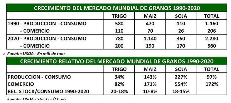 El mercado mundial de granos ha registrado en las últimas décadas importantes cambios, tanto en la oferta como en la demanda, que pueden explicarse por varios motivos, entre los que se destacan, el incremento en la población global, el crecimiento de los países emergentes y los cambios en los hábitos de consumo.